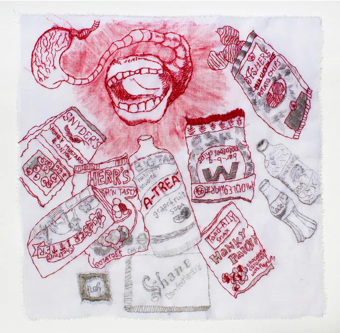 3. Postales de Filadelfia. 2018. Dibujo y bordado. 64 x 64 cm.
