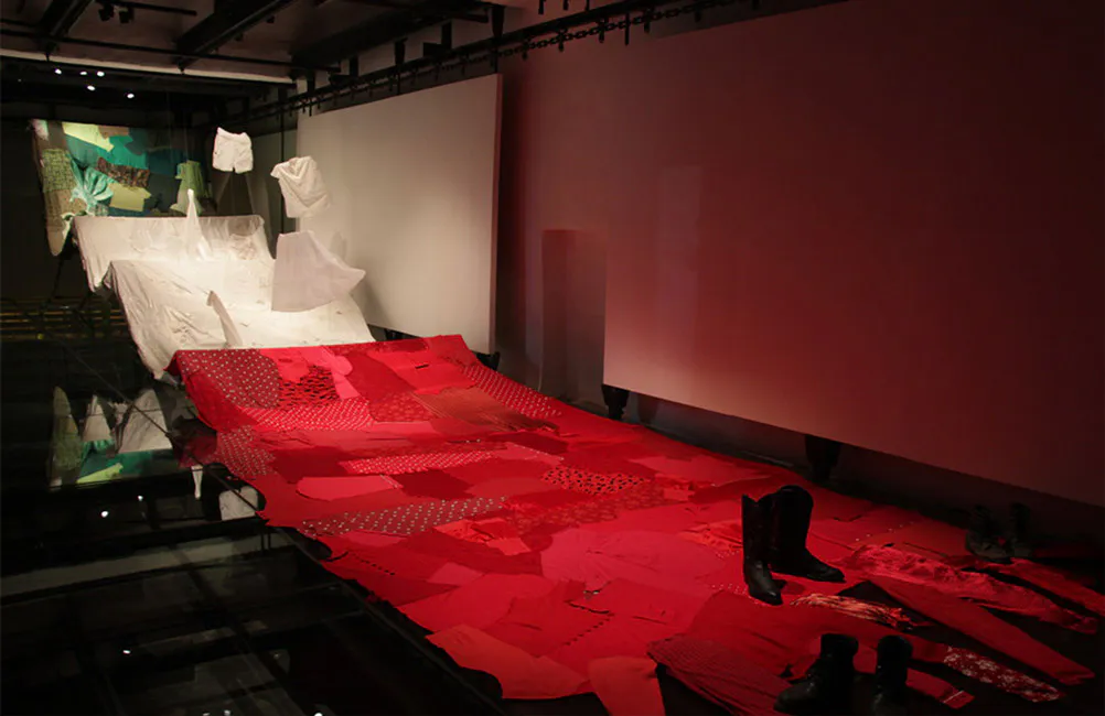 1. Mis cicatrices. 2016. Instalación de vestidos bordados. 20 x 7 x 1.20 mts.